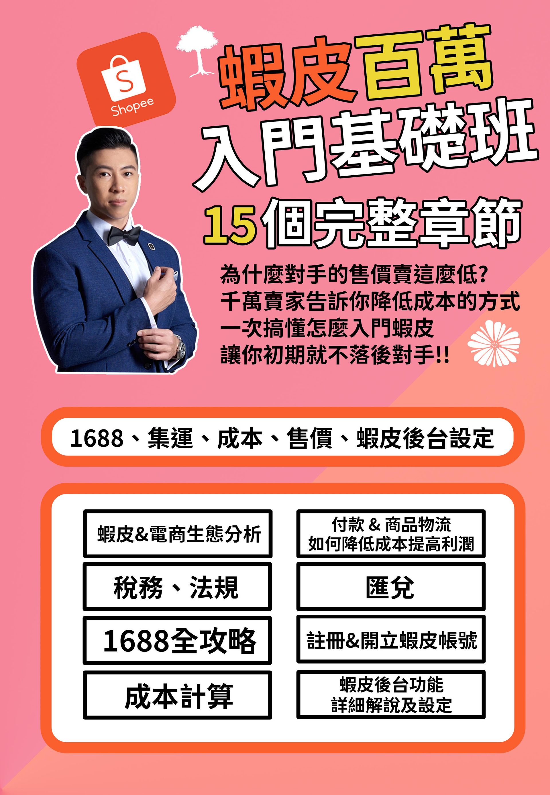 一次搞懂蝦皮怎麼入門。法規、稅務、貨源從哪找? 如何用最省的成本將商品運回台灣? 商品成本怎麼算? 蝦皮後台全設定解析~